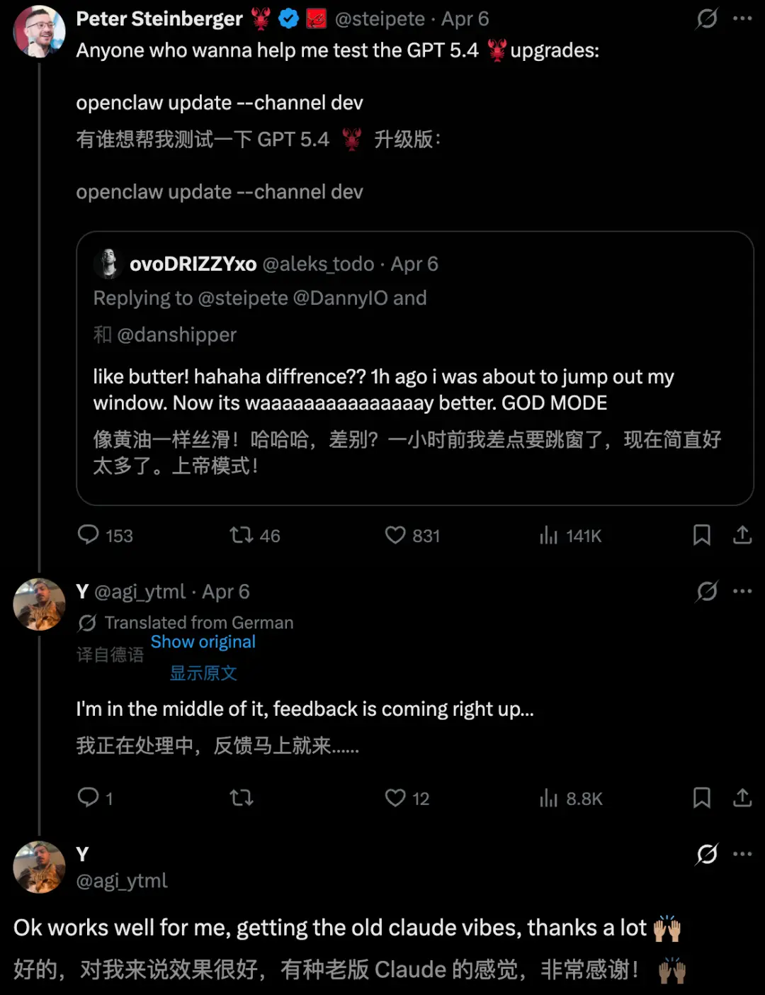 全新的OpenClaw 2026.4.5来了,官号在帖子中,仅用三个短句完成了最强回应——